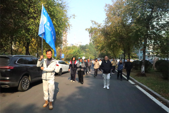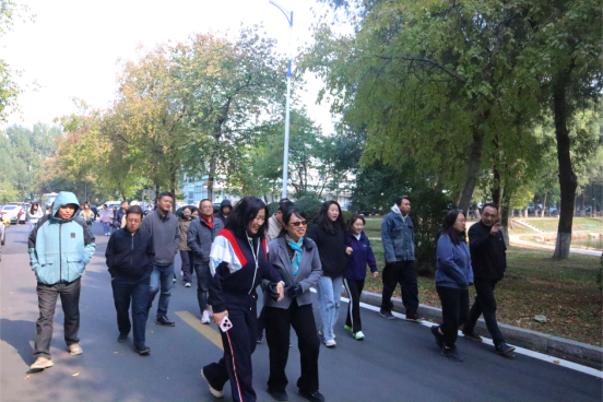 老师们边走边畅叙情谊、交流思想,在体验着运动活力的同时,也欣赏着校园秋日的诗情画意,以团结奋进、积极向上的精神风貌完成了徒步活动。