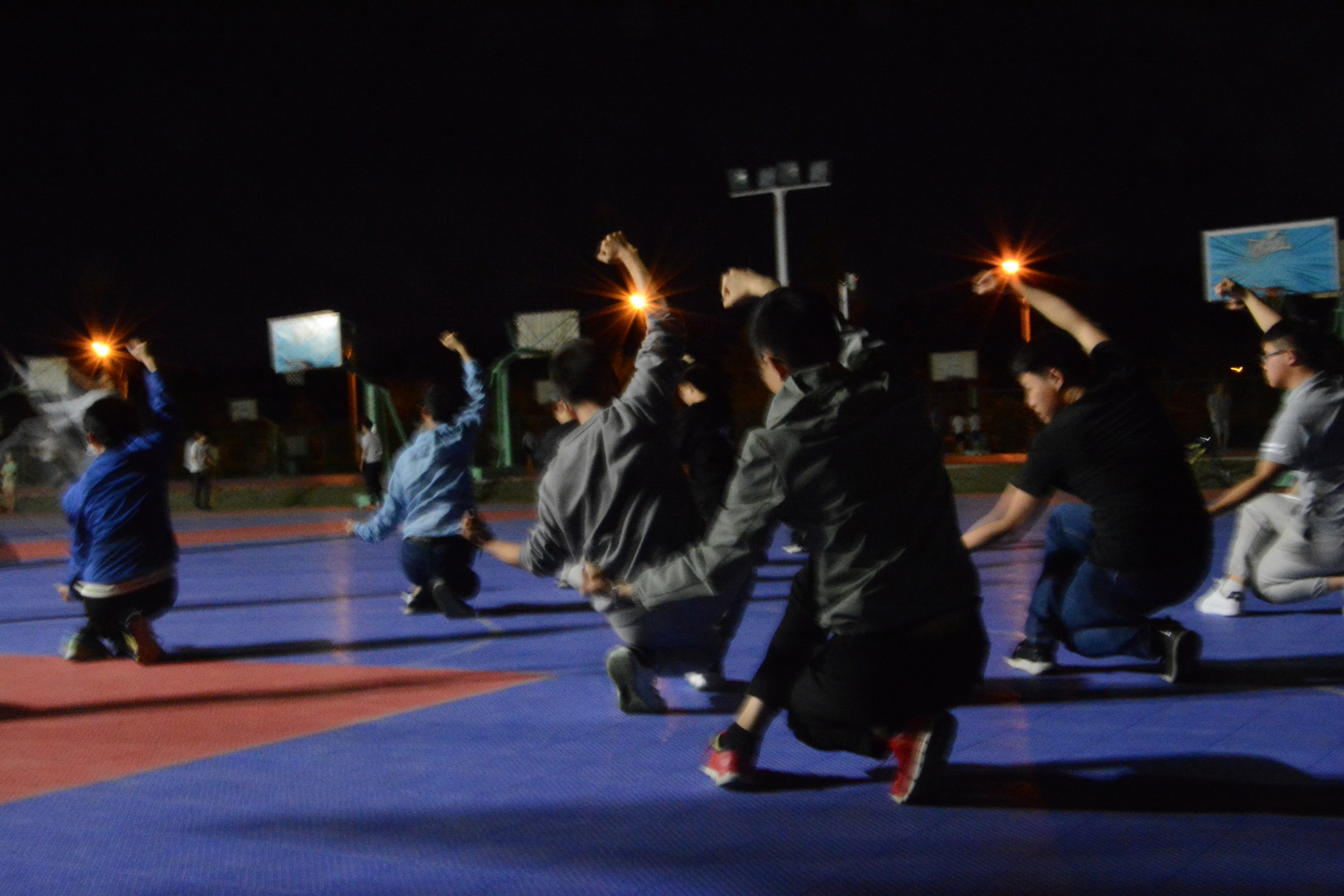 备战过程中,小伙子们每晚9:30在篮球场训练一个小时。连续20天,几乎天天满勤,从对长拳的陌生到动作整齐、有板有眼,他们付出了持之以恒的不懈努力。比赛开始时,小伙子们仍然抓紧时间跟着比赛场地的音乐在场地外一遍遍的完善动作。汇演时,小伙子们听从前台指挥,进场、退场、候场井然有序,尽展黑料正能量