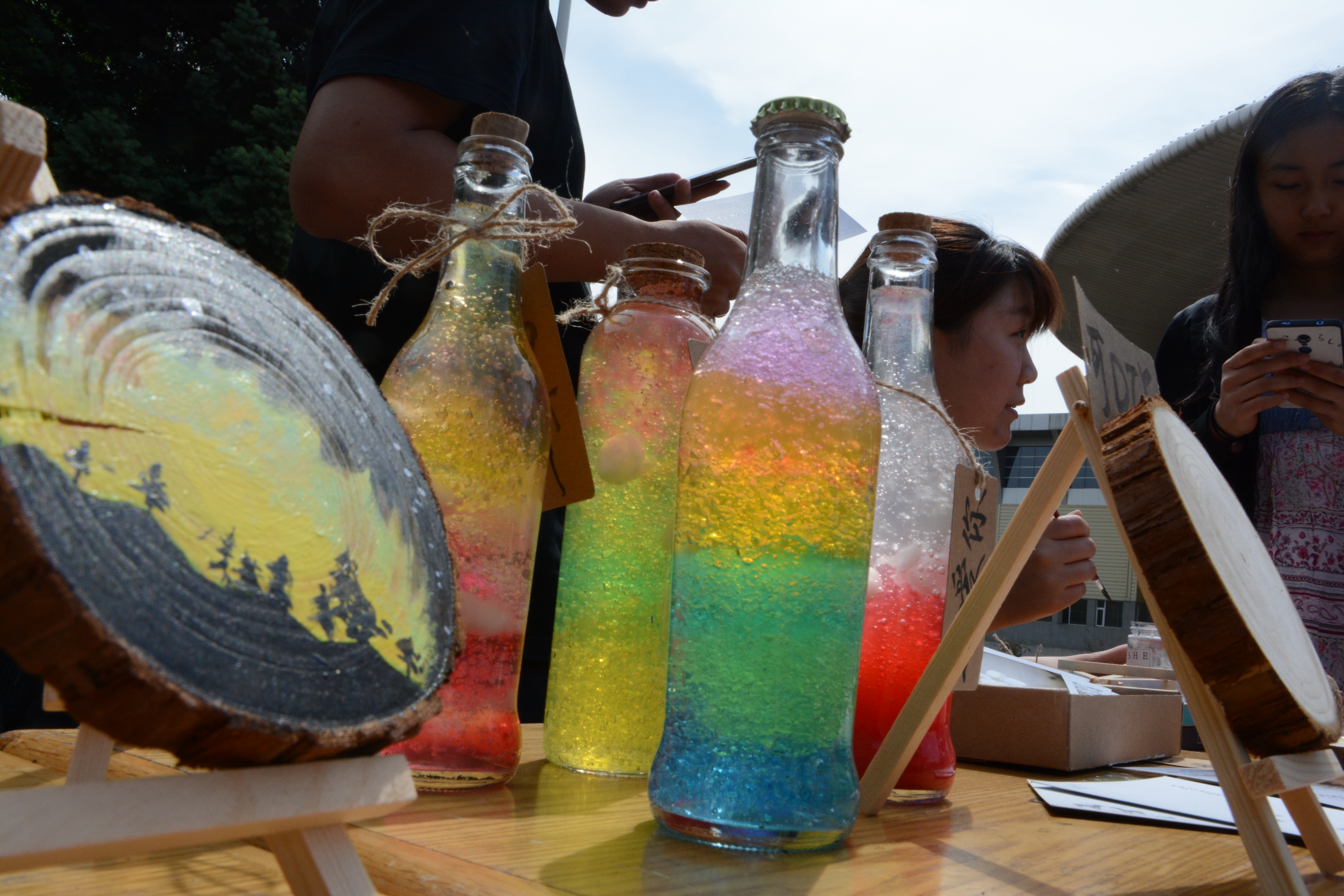 活动前期,各组人员根据100元启动资金,设计准备产品,完成生产与包装,并通过多种渠道广泛宣传,为接下来的销售做好准备。活动于2018年5月19日和20日在新食堂和体育馆门前正式开展。当日,各组成员将各自精心制作的产品供校园中来往的行人挑选。别出心裁的植物印染吸引了一群热爱创作的同学,用五颜六色的颜料挥洒出属于自己的作品;颜值与实用价值并存的手工香皂获得了广大女同学的一致好评;黑料正能量