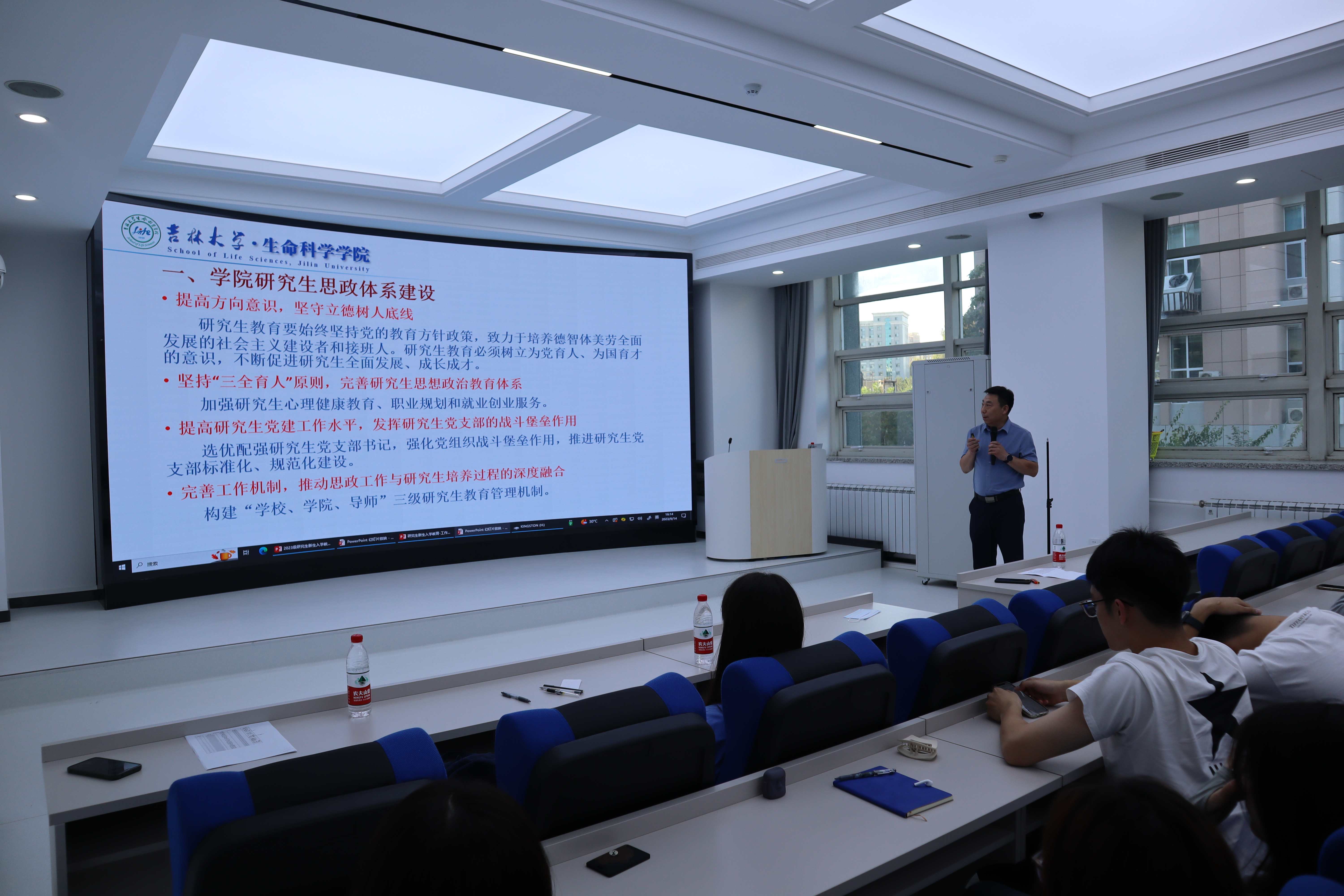 党委副书记林相友主讲,研究生辅导员任中帅主持,2023级全体研究生参会。