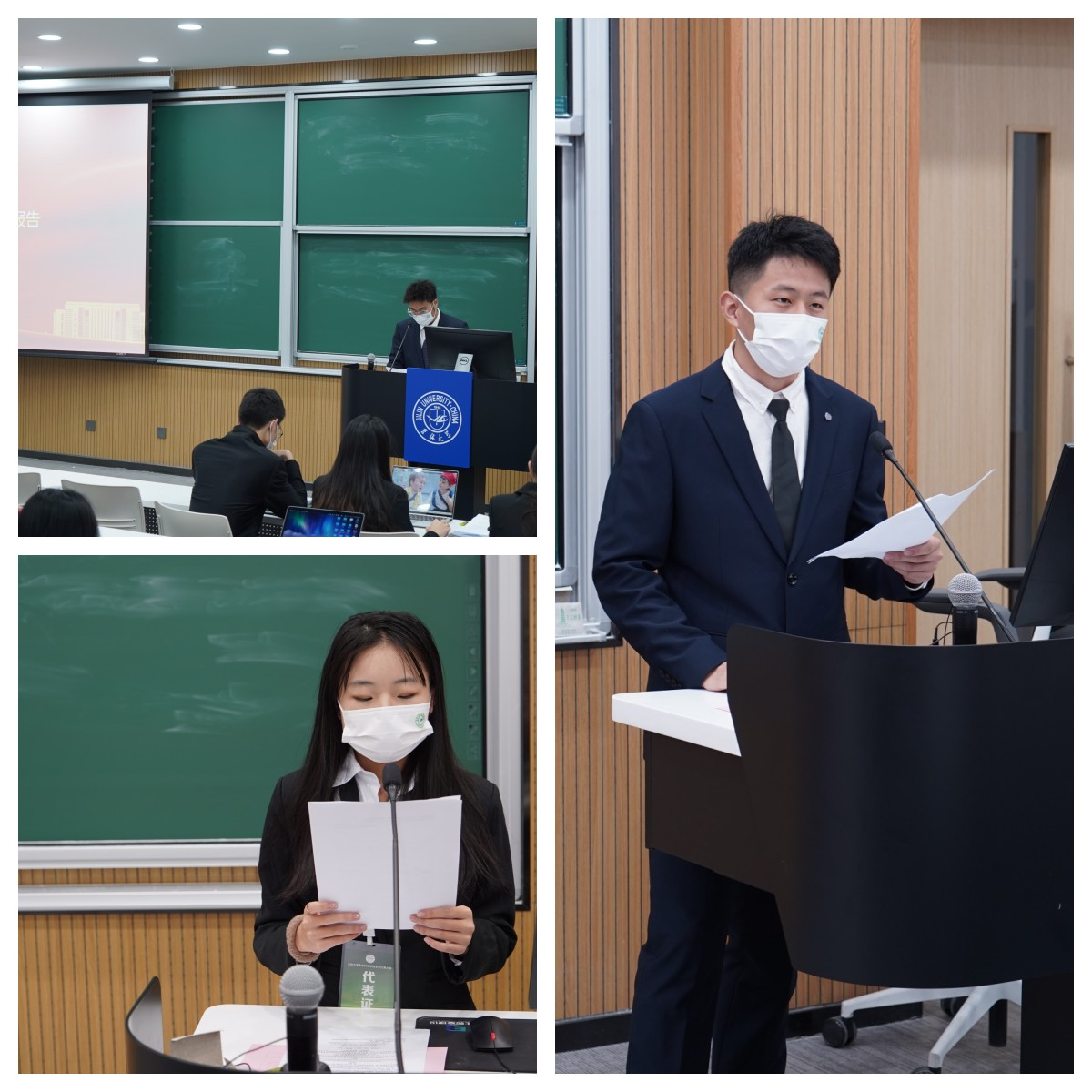 宣读完毕后,由2021-2022学年主席团成员魏羽翀宣读学生会主席团选举办法(草案),会议集体听取并表决通过了学生会主席团选举办法及大会选举监票员、计票员名单、学生会主席团候选人名单。接着由主席团候选人逐一上台做竞职演讲。演讲结束后,与会老师和学生代表通过民主投票,现场核票的方式最终确定孙伟淇、蒋治文、缪镓镓为黑料正能量