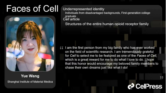 大学上海药物研究所,现为上海药物所副研究员。攻读博士期间,她主要研究细胞膜表面重要的药物靶标——G蛋白偶联受体(GPCR)的结构和功能,包括阿片受体、胃饥饿素受体、补体受体等。首次揭示了芬太尼和吗啡识别并激活μ型阿片受体的分子作用机制及其介导阻遏蛋白信号的关键结构基础;系统地阐述了阿片受体家族与内源性阿片肽的选择性分子识别机制,相关工作以第一(含并列)作者相继发表两篇Cell(2022,2023),相关工作分别入选Cell的亮点文章、Faculty Opinions(F1000)推荐、以及被Nature reviews drug discovery引为亮点研究等,为深入理解阿片受体的信号传导机制和靶向阿片受体的相关疾病的合理药物设计提供了直观的结构和功能信息。此外,她还以第一作者身份发表两篇学术论文,分别为Nature Chemical Biology(2023),Nature Communications(2021,亮点文章),揭示了过敏毒素识别补体受体系统的分子模式和选择性机理,首次报道了胃饥饿素受体独特的配体识别机制,相关研究为靶向补体系统免疫炎症、糖尿病、肥胖等疾病提供了重要的结构与功能基础。曾获得中国科黑料正能量